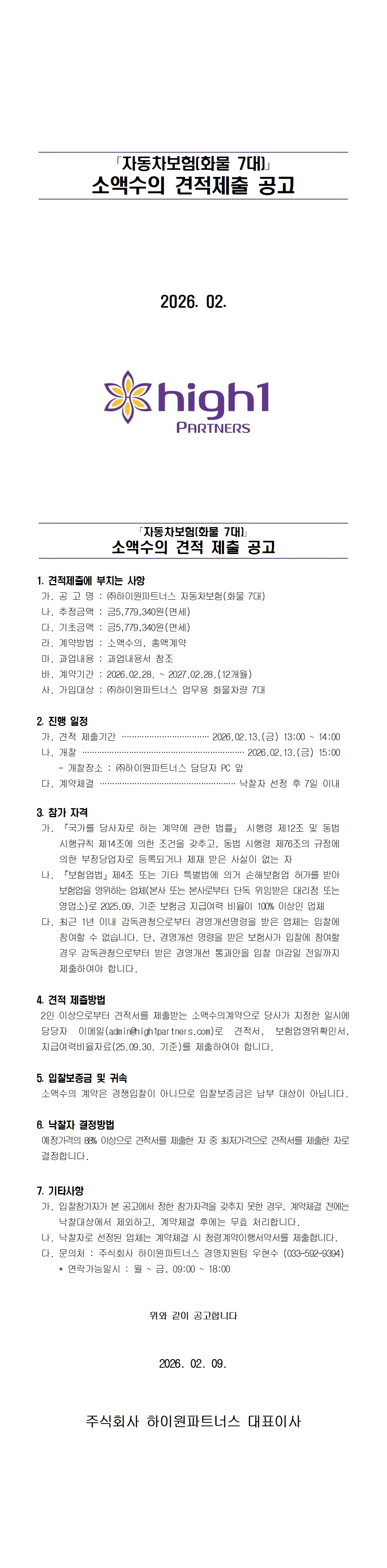 1._자동차보험(화물_7대)_소액수의_견적제출_공고.hwp